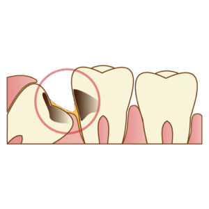 なんと 手前の歯までむし歯にしてしまう ことがあります。